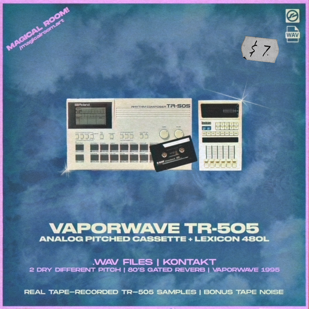 The "Vaporwave 1995" is pitched in a very low tune and has a deep reverb that combined with the tape color sounds lo-fi and nostalgic.